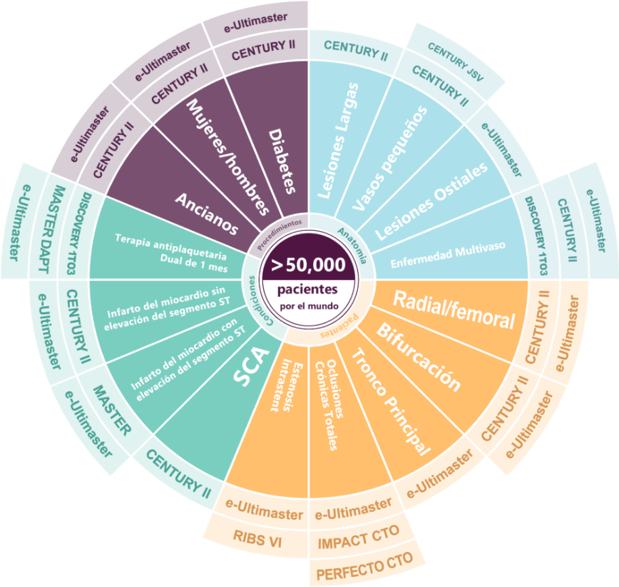 Terumo es pionero de la tecnología de polímeros biodegradables. Terumo lanzó el primer BP-DES del mundo en 2008. Terumo cuenta con la historia más larga en la fabricación de BP-DES. Ultimaster es el BP-DES más estudiado del mundo con más de 50,000 pacientes en esta larga historia1-2. e-Ultimaster, que es el programa clínico clave que cubre diversas características de los pacientes y es uno de los registros de BP-DES más grandes del mundo. e-Ultimaster demostró un buen rendimiento de Ultimaster ³.