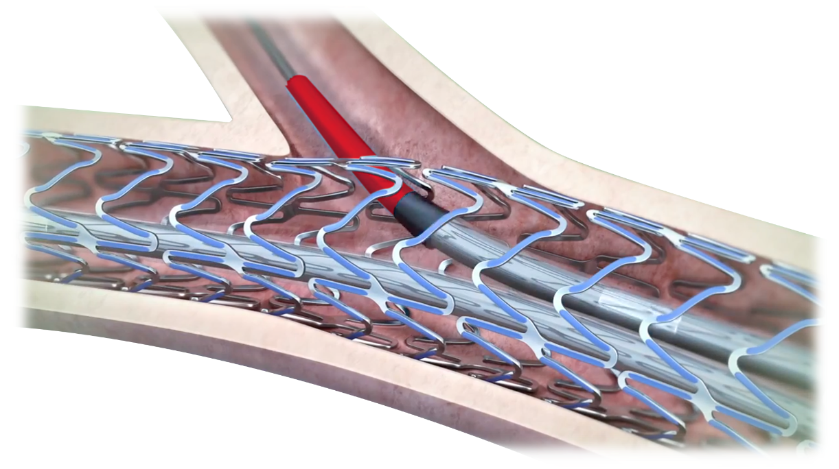 El stent Ultimaster cuenta con una plataforma uniforme de celda abierta. Ultimaster facilita el procedimiento en lesiones de bifurcación con su capacidad más amplia de sobreexpansión, ingreso de las ramas laterales sin complicaciones y administración confiable de medicamentos.